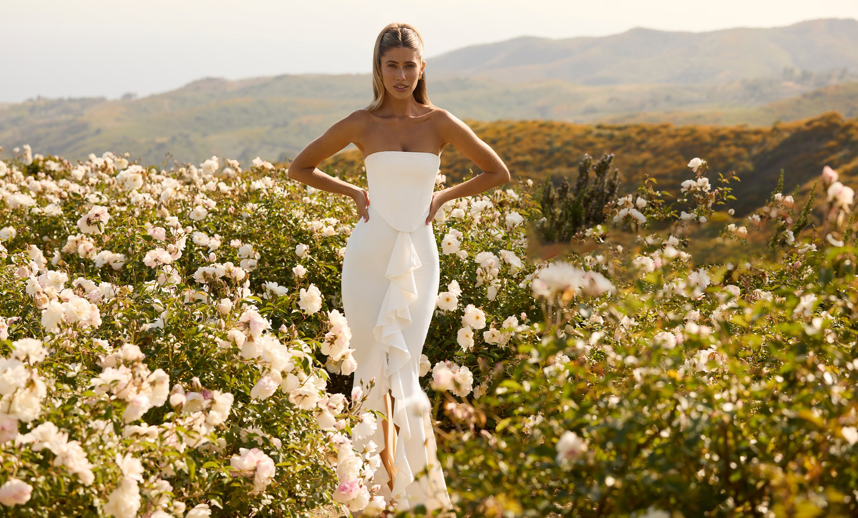 blanco Minivestido acampanado con escote halter y lentejuelas transparentes Livia Oh Polly mujer vestidos 6N8XHD1